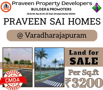 Greetings from Praveen Property Developers\r\nCMDA APPROVED PLOT SALES @VARADHARAJAPURAM\r\n\r\nPROJECT NAME : PRAVEEN SAI HOMES \r\nLAND AREA : 3200 ...